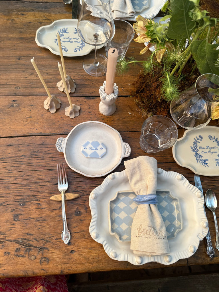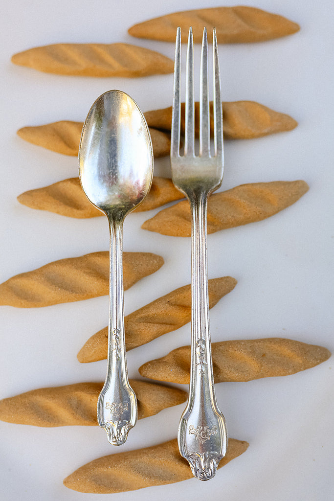 Inspired by classic French loaves, each baguette fork rest is sculpted by hand from unglazed stoneware and finished with soft, tactile textures. Made for dinner gatherings and thoughtful table styling, they keep your flatware lifted and your place setting elevated. Perfect for hosts who love meaningful, artisan-made details.